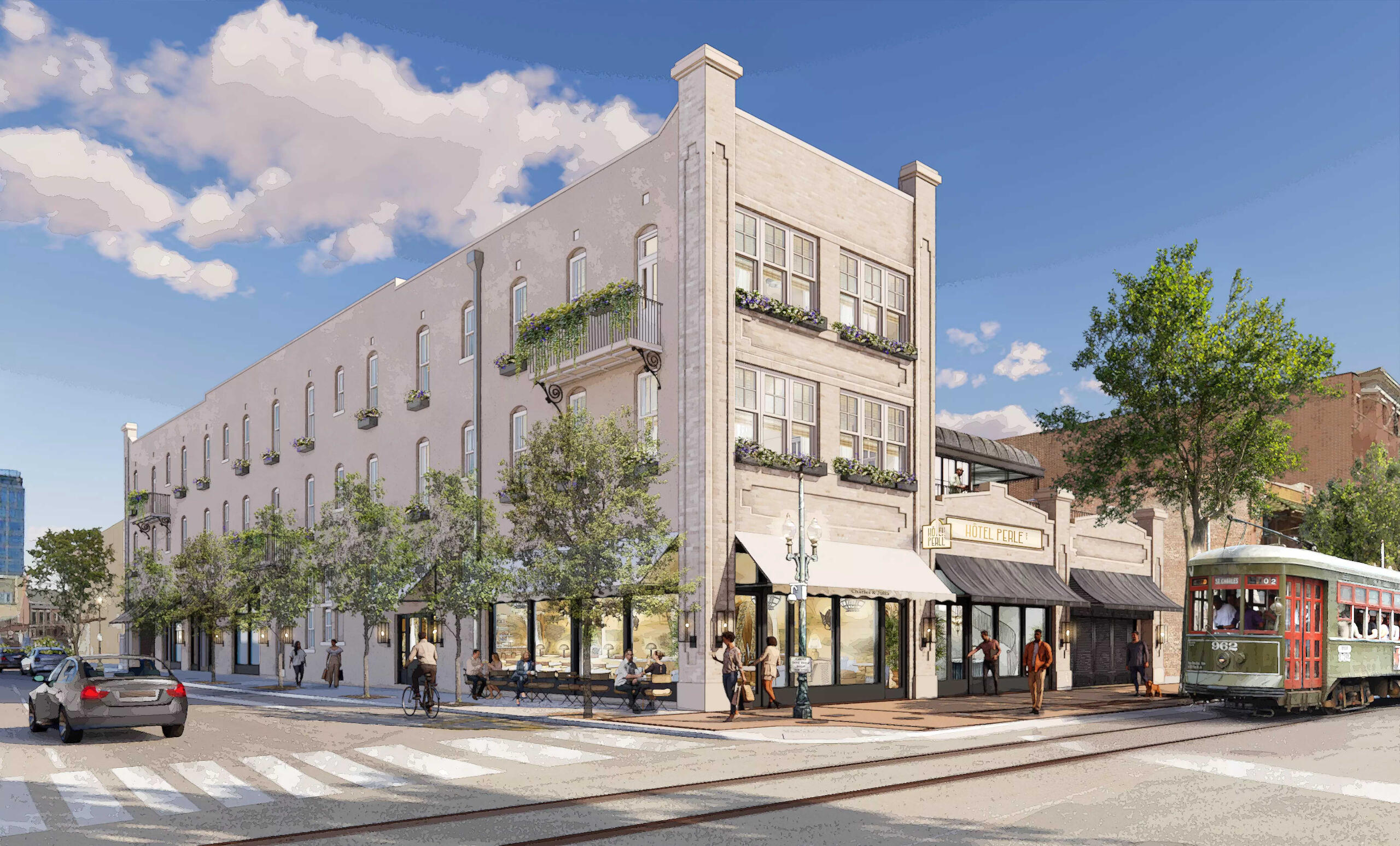 The Hotel Perle is the first "hotel for groups" in the country. Our concept brings friends & family together in large, multi-room suites without sacrificing on the design and experience of a boutique hotel. Each guest suite offers groups kitchen and lounge spaces and multiple bedrooms and bathrooms within the suite.Located at the corner of St Charles Ave. and Julia St. in downtown New Orleans, the Hotel Perle is within walking distance of the Superdome, WWII Museum, Bourbon Street, Convention Center, and some of the city's best restaurants - such as Peche and Herbsaint.Our property also features a ground-floor bistro & bar, aptly named the Charles & Julia, as well as a terrace-level pool and outdoor bar overlooking St Charles and the Mardi Gras parade route.While we won't offer all of the same services as a traditional boutique hotel, we will have floating House Managers there to greet guests, address their concerns, and generally guide them during their stay.